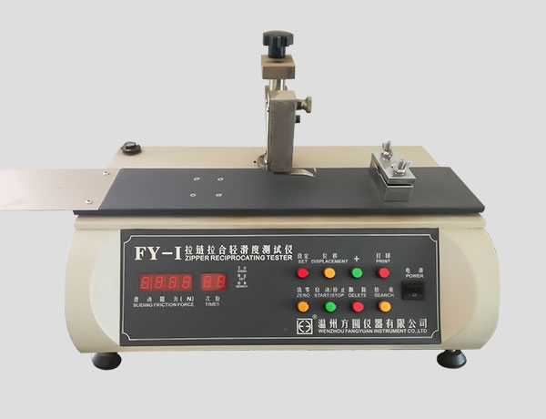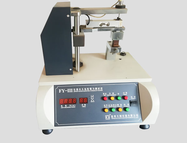 Mount the zipper with a bottom stop on the upper and lower damps, with the clamp end face aligned with the bottom stop internal surface, and the clamp mouth kept dose to the bottom stop. The measured value is bottom stop lateral strength.